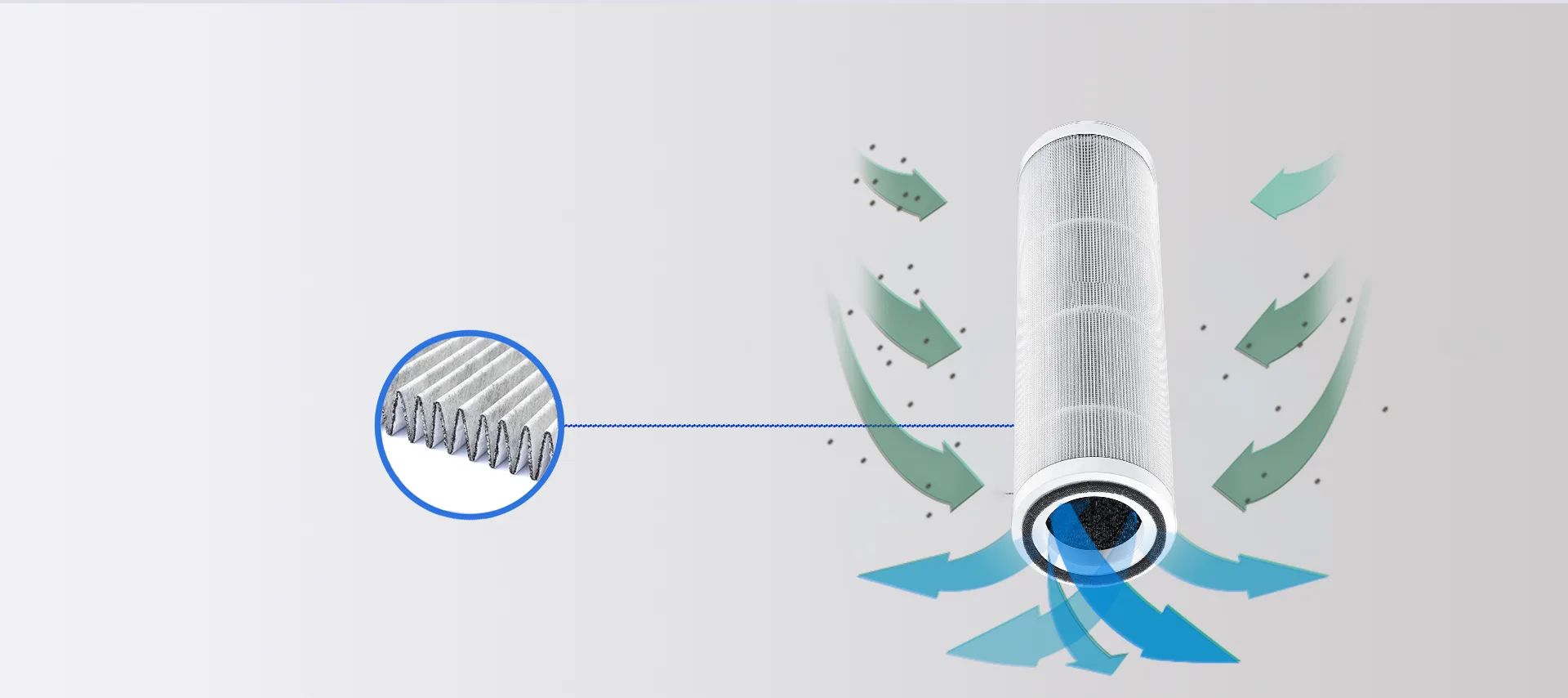 在系統主風機作用下,含塵氣體由除塵器下部進風口進入除塵器底部風箱,對含塵氣體進行預處理,再由底部進入上部箱體內的各除塵室,粉塵被吸附在濾筒外表面,過濾后的潔凈氣體經濾筒進入上部箱體內的凈氣室,被收集后排至出風口。